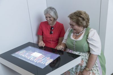 Integrieren ließen sich auch Hannelore Paukner und Heidi Ingerl aus Straubing. Sie waren fasziniert von der Medienstation zur Verfassung von 1919, in der man spielerisch erleben kann, was sich im Vergleich zur Verfassung 1818 verändert hat. Den beiden ging es dabei um einen Wissensvorsprung: „Wir wollen das alles schon können, wenn wir im Juli mit unseren Familien wieder herkommen. Da wollen wir mit unserer digitalen Kenntnis an den Stationen hier glänzen.“