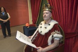 Eigentlich für Kinder gedacht, für Männer das größte Vergnügen: einmal Kini sein und auf die Verfassung schwören. So ließen sich Gerhard Schäffler aus Regensburg und Siegfried Würfel aus München an einer Mitmachstation zum König verwandeln. Schäffler freut sich als Regensburger schon lange auf das neue Museum: „Ich werde es meiner Familie und meinen Freunden weiterempfehlen und sicher selbst mit einigen Gruppen immer wieder herkommen. Das Haus hat mich heute sehr überzeugt.“ Siegfried Würfel war eigens wegen des neuen Museums mit einem Freund aus München angereist: „Hier gibt es nicht nur trockene Themen zum Ablesen, es ist toll, dass man als Besucher richtig integriert wird.“
