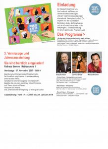 Der Kulturförderverein von Prien empfiehlt die 3. Jahresausstellung vom Bernauer Kunstkreis, die am Freitag, 17. November um 19 Uhr im Rathaus von Bernau mit der Vernissage beginnt. Die Ausstellung dauert bis 29. Januar 2018.
