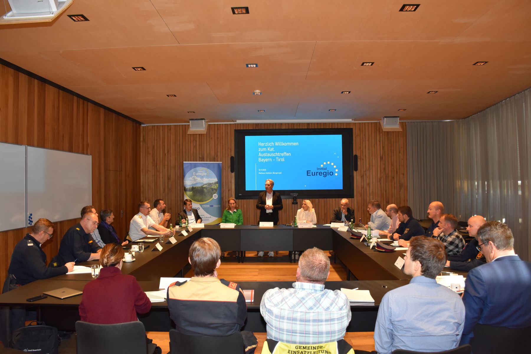 Insgesamt 22 Vertreter:innen aus Politik, Verwaltung und Einsatzorganisationen beiderseits der Grenze kamen im Kufsteiner Rathaus zum jährlichen Katastrophenschutz-Austauschtreffen zusammen.