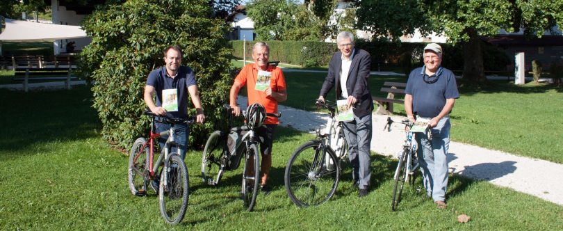 Die beiden Autoren Dr. Rainer Pausch und Hansjörg Decker nahmen die Neuauflage zum Anlass, alle Radtouren zu aktualisieren und die Möglichkeiten zur Einkehr zu vervollständigen. Grund genug für Bürgermeister Philipp Bernhofer, sich bei den beiden persönlich für ihr langjähriges ehrenamtliches Engagement zu bedanken.