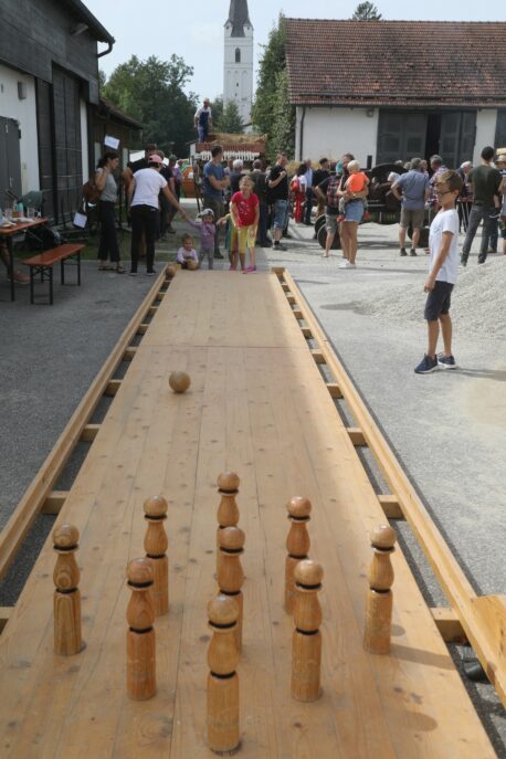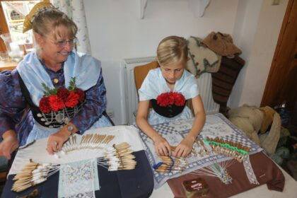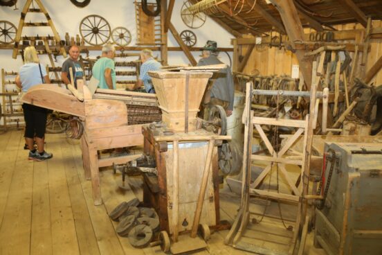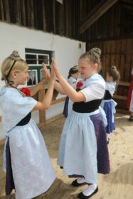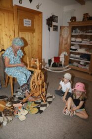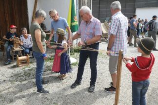 Eine runde Sache war für die Besucher im Trachtlerheimatmuseum die landwirtschaftliche und bäuerliche Geräteschau sowie die Ausstellung alter Handwerksberufe. Zudem konnte die Ausstellung im Trachtlervereinsstadl oder die eigens aufgebaute Goldhauben-Stickereien in der Stub’n besichtigt werden. Die Monica Seidel aus Kemoden führte in ihrer Vereinstracht das Klöppeln vor, das Arbeiten an einem Spinnrad demonstierte die Lydia Popel. Die Angelika Königbauer stellte handgefertigte und naturverbundene Seifenstücke her. Kreative Weidenkunst zeigte die Michaela Pöppl aus Zustorf. Sabine Sewald-Bauer aus Steinkirchen stellte ihre handwerkliche Ton- und Keramikarbeiten aus. Kreative Weidenkunst zeigte die Michaela Pöppl aus Zustorf. Marianne Seethaler demonstrierte die Arbeit der Butterherstellung. Franziska Brandlmeier bestelte mit den Kindern Erntestäbe. Zudem war eine Holzkegelbahn aufgebaut, die an diesem Nachmittag regen Zulauf hatte.