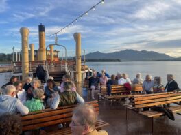 Die besonderen Willkommensgrüße an Bord des Fahrgastschiffes „Ludwig Feßler“, das entgegenkommend von der Chiemsee-Schifffahrt zur Verfügung gestellt wurde, konnten mit Bernaus Altbürgermeister Lorenz Steindlmüller, mit Ingrid und Ludwig Feßler, mit Peter Fenzl und mit Gisela Fischer einige Gründungs-Mitglieder begrüßt werden. Besondere Willkommensgrüße galten Ehrenvorsitzendem und Bernaus Alt-Bürgermeister Klaus Daiber sowie Matthias Jokisch, dem Bürgermeister von Brannenburg und dem Vorsitzenden der Sicherheitsgemeinschaft Inntal. Diese – sowie jene von Vohenstrauß in der Oberpfalz – wurde im Gefolge der erfolgreichen Priener Vereinsgründung vor 30 Jahren aufgrund guter und persönlicher Beziehungen zur Marktgemeinde Prien ins Leben gerufen. Zum Erfolg der gut organisierten und bewirteten Sonderfahrt über das Bayerische Meer trugen auch noch Bernaus Bürgermeisterin Irene Biebl-Daiber als Zweite Vereinsvorsitzende und Mitorganisatorin sowie Caterer und Wirt Robert Mayer aus Thalkirchen bei.