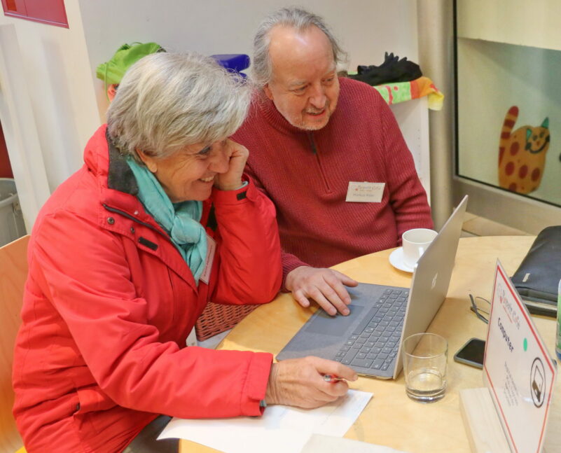 – Auch Computer geben manchmal ihren Geist auf. Der Organisator des Aschauer Repair Cafes Markus Piller versucht zu helfen.