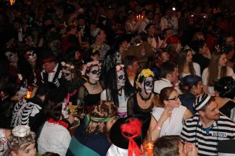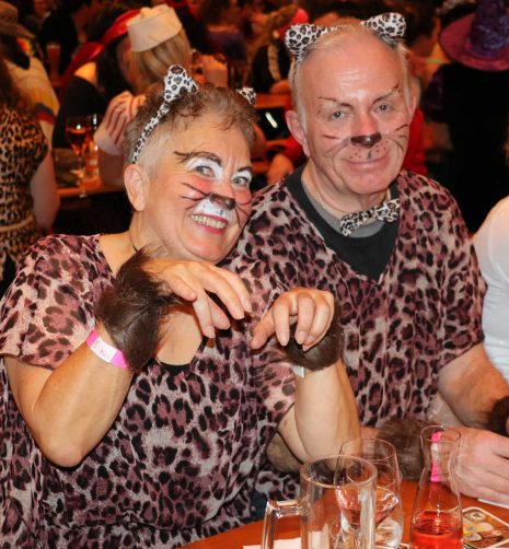 Zwischen den Auftritten der Garden kam auch das Publikum immer wieder zum Tanz und die Talbach Buam heizten den Tänzern richtig ein. Entgegen dem sonstigen Trend bei Bällen und Tanzfesten war die Tanzfläche stets gut gefüllt, gar mancher maskierte Ballbesucher im Straßenkater-Ganzkörperdress beneidete die Tänzerinnen der Garden um ihre luftigen Kostüme. Die Bar war ständig umlagert, manches Paar musste nach dem Tanz den Flüssigkeitspegel durch geistige Getränke wiederherstellen.