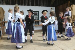 Die Vilsheimer Trachtlerjugend führte einige Volkstänze beim mittlerweile 32. Brauchtumsdreschfest in der Vilsgemeinde auf
