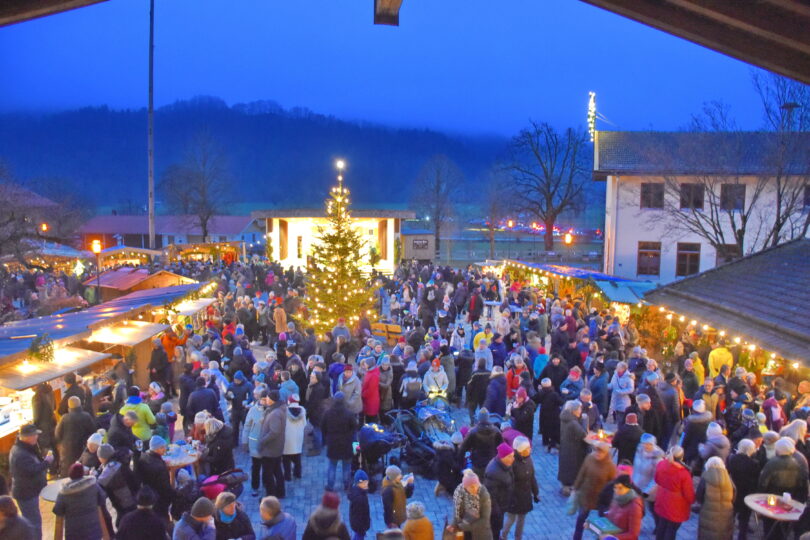 Die Schützen in ihrer Tracht standen  mit Schwarzpulver gefüllten Böllern pünktlich bereit, um mit dem alten Brauch des Salutschießens  den Schlechinger Christkindlmarkt zu eröffnen. Der beleuchtete Christbaum in der Mitte des Dorfplatzes   zauberte eine weihnachtliche Stimmung, die auch von den 29  liebevoll geschmückten und mit LED Lichterketten beleuchteten  Ständen der Aussteller  verbreitet wurde.