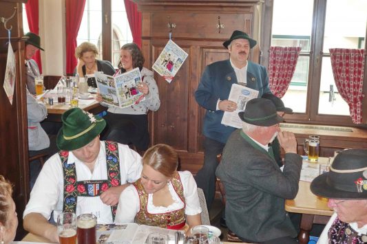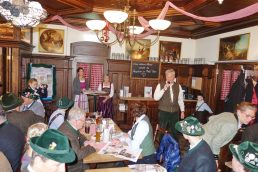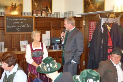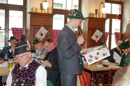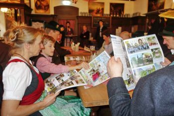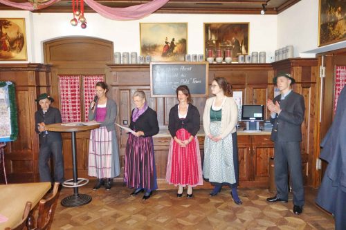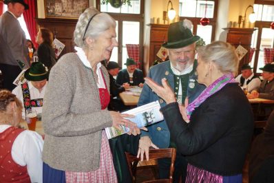 „Das Jahr 2020 bietet viele Jubiläen, denn nach dem Ende des Ersten Weltkriegs 1919 konnten im Folgejahr viele Vereinsgründungen erfolgen, diese Jubiläen sowie die Gautrachtenfeste und viele weitere ganz besonders besuchenswerte Termine und Tipps haben wir zusammengestellt, einer davon ist zum Beispiel das dritte Ochsenrennen am Faschingssonntag in Wildenwart im Chiemgau“ – so Brigitte Raab von der gleichnamigen Kalendermacher-Familie, die den frisch gedruckten Kalender 2020 im Augustiner am Platzl inmitten von München einer munteren Schar von Brauchtums- und Bayern-Freunden vorstellte. Zu den Themen, die im Kalender dargestellt und bei der Präsentation näher vorgestellt wurden, gehören unter anderem die 400jährige Salz-Geschichte in Traunstein (unter anderem mit den Samern vom Samerberg), das religiöse Theater und die Krippenbaumeister von Bad Endorf, ein erstmalig wieder durchgeführte Gebirgsschützen-Gelöbnis, das erste Marketenderinnen-Treffen in Unterwössen sowie der in Antdorf mit 1.312 Schuhplattlern aufgestellte Plattler-Weltrekord. MdL Dr. Marcel Huber, ebenso Ehrengast wie Schauspieler Dieter Fischer, wie Landesvorsitzender Max Bertl vom Bayerischen Trachtenverband und Ehren-Landeshauptmann Karl Steininger vom Bund der Bayerischen Gebirgsschützen, würdigte als selbst aktiver Krippenbauer den Wert von echter Traditions- und Glaubenspflege. Die musikalische Gestaltung der Kalenderpräsentation mit traditionellem Weißwurst-Genuss übernahm die „Funkloch-Musi“.