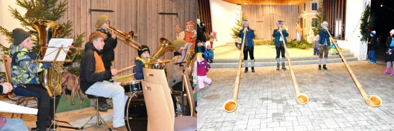 Akustisch wurde diese schöne Stimmung durch die „Jungen Schlechinger Alphornbläser“ und die Bläser des Musikvereins mit mehreren Auftritten am und im Musikpavillon unterstützt. Das Salettl wurde vom Gartenbauverein und den Gemeindemitarbeitern für die Adventszeit mit viel Tannengrün und biblischen Weihnachtsszenen geschmückt.