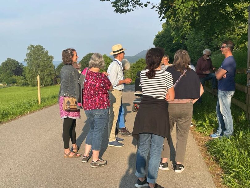 Nach dem erfolgreichen Start im Herbst gingen in der Gemeinde Übersee am Chiemsee die historischen Dorfführungen in die zweite Runde, wobei man sich zusätzlich auf eine neue und sechste Tour freuen durfte: Jak Gnadl gab bei dem von ihm geführten Dorfspaziergang Einblicke in die geschichtliche, bauliche und strukturelle Entwicklung an der Ringstraße. Gut 45 interessierte Gäste und Einheimische folgten ihm dabei und lauschten diszipliniert den Geschichten zu den Höfen auf dem Weg.