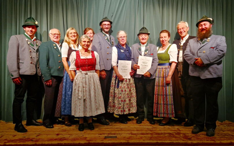 Foto: Johanna Scholz – Ehrung bei den Rimstinger Trachtlern von links: Von links: Maximilian Guggenbichler (Schriftführer), Hans Thanbichler, Christine Heindl, Kathi Thanbichler, Monika Guggenbichler, Josef Lehner (2. Vorstand), Berta Niedermayer, Florian Hoffmann, Resi Hollinger, Klaus-Michael Koch, Daniel Grimm ( Kassier).
