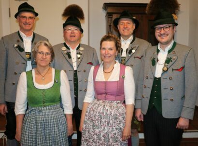 Das Gauehrenzeichen des Chiemgau-Alpenverband für 40 Jahre aktive Mitarbeit in der Trachtensache erhielten aus der Hand der stellvertretenden Gauvorsitzenden Lisbeth Tengler Peter Huber, Monika Ballauf, Andreas Freund junior und Helmut Rosenwink.