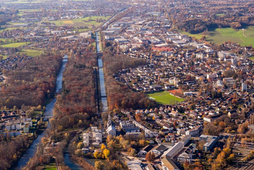 Foto: Rainer Nitzsche – zeigt Stadt Rosenheim mit Mangfallkanal