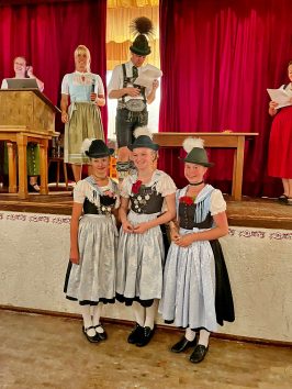 Für alle Teilnehmer gab es zum Dank und als Erinnerung schöne Hutabzeichen. Ihre Freude an der Trachten- und Brauchtumspflege brachten die Kinder und Jugendlichen mit ihren Jugendleitern und weiteren Besuchern auch noch Gemeinschaftsplattler zum Ausdruck.