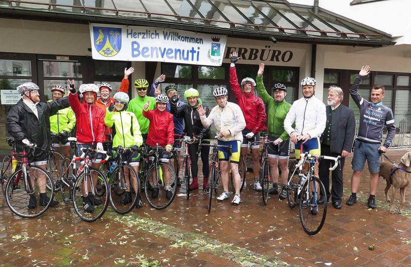 Zwölf Mitglieder des Fahrradclubs „Ciclo Club Navale“ , darunter drei Radlerinnen, sind am Donnerstag, 1. Juni vor dem Rathaus in Valdagno gestartet, um die mehr als 400 km entfernte Partnerstadt Prien am Chiemsee zu besuchen. Die Tour ging über St. Michael an der Etsch, Sterzing und Kufstein. An der Müllner Alm in Sachrang wurden die Valdagnesen von den Mitgliedern des Radfahrvereins 1893 Prien am Chiemsee e.V. abgeholt und bei Regenwetter erreichten beide Teams am Pfingstsonntag Ihr Ziel – das Rathaus in Prien am Chiemsee, dort wurden beide Teams ganz herzlich vom dritten Bürgermeister Alfred Schelhas und der Referentin für Städtepartnerschaft Ida Brömse empfangen.