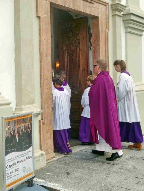 “Die Fastenzeit ist schonungslos, ja zuweilen radikal für Gläubige, die sich mit ihren eigenen Schwächen dem Gott öffnen und damit ihren Glauben stärken” – mit diesen Worten begann Pater Virgil Steindlmüller vom Benediktiner-Kloster St. Peter in Salzburg seine Predigt anlässlich des 40stündigen Gebets in Prien. Sein Thema lautete: “Überall ist Gott gegenwärtig – so glauben wir, und die Augen des Herrn schauen an jedem Ort auf Gute und Böse – Aspekte zum Gebet aus der Benediktsregel”.