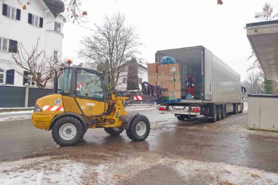 Fotos: Hötzelsperger – Eindrücke vom Verladen der beiden LKW für Ternopil in der Ukraine.