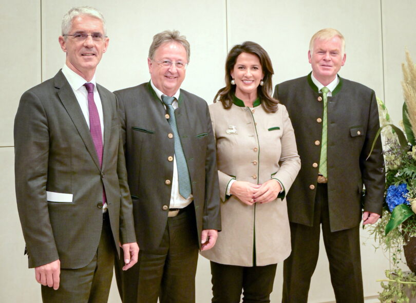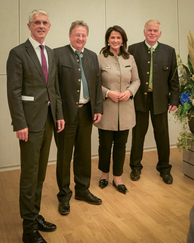 Bericht und Foto: StMELF / Pia Regnet – v.l.n.r. Dr. Michael Köstler, Geschäftsführer Bayerische Tierseuchenkasse, Dr. Andreas Randt, Geschäftsführer TGD, Staatsministerin Michaela Kaniber sowie Michael Häsch, 1. Vorsitzender TGD.