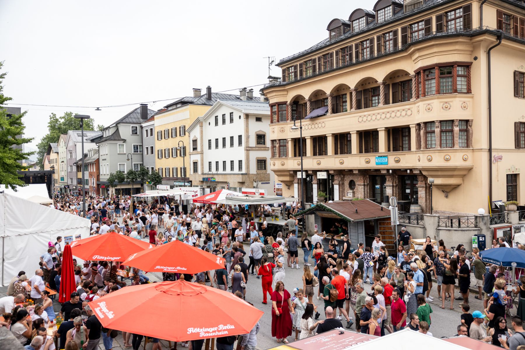 In der ganzen Kufsteiner Innenstadt erwarten Vereine die Besucher:innen mit köstlichen Schmankerln, wie Kiachl, Bratensemmel oder Zillertaler Krapfen.