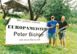 Bericht und Bilder: Thomas Schwitteck – Fotos zeigen die Teilnehmer aus Neubeuern Stephan Artmann, Josef Paul, Hannes Astner (10 Jahre), Hans Astner mit ihrem Arbeitsgerät und einem ersten Probschnitt sowie Peter Bichler, heute Vorstand des Trachtenverein Immgrün Altenbeuern – Erfolg vor mehr als 25 Jahren