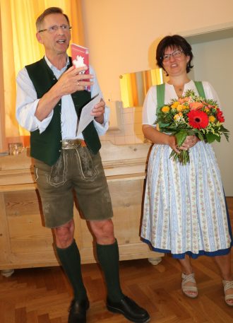 Der Vorsitzende des Frasdorfer Heimat- und Kulturvereins Rupert Wörndl und Historikerin Martina Stoib eröffneten die Sonderausstellung im Frasdorfer Dorfmuseum: „Ende der Monarchie, Revolution, Flucht des Königs – die Ereignisse von 1918 aus örtlicher Sicht“.