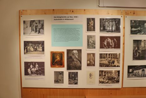 Der dritte Bürgermeister von Frasdorf Peter Freund eröffnete die Ausstellung im Dachgeschoss der Alten Schule. Mit großem Fleiß hat Rupert Wörndl mit seinem Heimat- und Kulturverein hier in den letzten Monaten eine Sammlung zusammengetragen, die ihresgleichen sucht. Hier sind vor allem die zahllosen Exponate zum Aufenthalt des letzten bayerischen Königspaares und der Verbleib der Prinzessinnen nach den Novemberwirren hervorzuheben. Vom offiziellen Hofbild über mehr oder weniger private Bilder bei den Vorkriegsaufenthalten auf Schloss Wildenwart bis hin zum Tod und zur Überführung der „beiden weiland Majestäten“ nach München zeigen die Ausstellungsmacher alles, dazu reichhaltige Auszüge aus den regionalen Zeitungen mit Hinweisen auf den Tod des Königs und der Königin sowie „den Verbleib der sterblichen Hüllen“ in München. Mehrere Tafeln geben Auskunft über die früheren Bewohner des Schlosses, wie Herzogin Adelgunde von Modena und die späteren – von den Prinzessinnen Hildegard und Helmtrud bis zum jetzigen Schlossherrn Herzog Max und seiner Familie. Noch nie miteinander gezeigtes Material persönliche Bilder und Briefe aus den Monaten der Revolution vervollständigt die Sammlung.