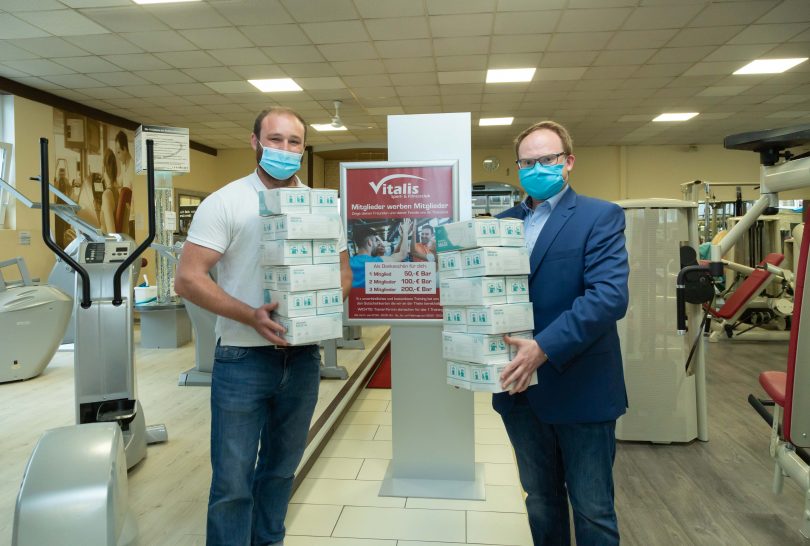 Kürzlich überreichte Slawik Weber, Geschäftsführer des in Prien ansässigen Sport- und Fitness-Clubs „Vitalis“, 5.000 dreilagige Mund-Nasen-Masken im Wert von 3.300 Euro an Ersten Bürgermeister Andreas Friedrich in seinem Studio in der Goethestraße. Die Masken würden mit Bedacht an Pflegedienste, Altenheime, Schulen sowie an die Mitarbeiter des Bauhofs verteilt, sagte Erster Bürgermeister Andreas Friedrich und dankte dem Geschäftsführer für die große Unterstützung in Zeiten von Corona.