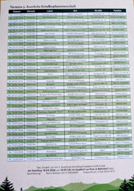 Bis zum dortigen Finale am Samstag, 18. April wird 43 mal in Auerbräu-Gastwirtschaften in den Landkreisen Rosenheim, Traunstein, München und Miesbach um den Einzug sowie um Geld- und Sachpreise gespielt. Nähere Informationen gibt es bei den beiden Spielleiter Hans Winkler, Tel. 0173-5954698 und Anton Feistl, Tel. 0160-92657477.