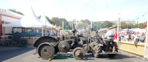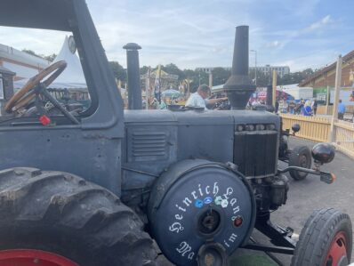 Fotos: Hötzelsperger – Sebastian Bichler mit seinen LANZ-Bulldogs am Museumszelt bei der Oidn-Wiesn auf dem Münchner Oktoberfest.
