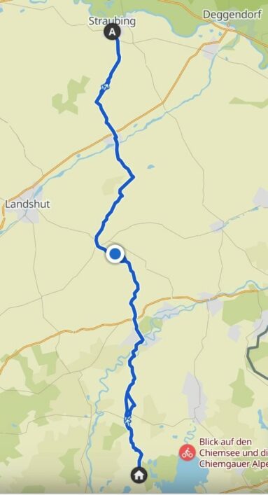 Nachdem ich die knapp 200 km mit dem Zug, vorbei an  Pilsen, von Prag nach Cham gut ankam, suchte ich als erstes den heißbegehrten Telekom Shop, der mir gottseidank die defekte Sim-Karte auswechselte und somit das Internet wieder zum Laufen brachte, womit ich mein “Radlnavi” Komoot endlich wieder zurück hatte. So schön wie die Elektronik ist, so anfällig ist sie leider auch.Der letzte Abschnitt meiner Pragreise war mein längster an einem Tag mit dem Fahrrad; Straubing – Bad Endorf 158 km. Für mich als ehemaligem Land- und Forstwirt, war, vorbei an den fruchtbarsten Böden Bayerns, den Gäuboden zu radeln, total interessant. Hier herrscht im Gegensatz zu uns oder auch den bayerischen Wald, vorwiegend reiner Ackerbau. Von Zuckerrüben, über Kartoffel-, Salat-, Kraut-, Gurken- und Kürbisfeldern, bietet diese Gegend alles.