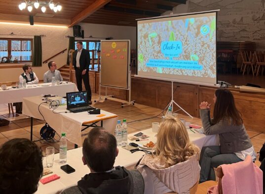 Am 20. Februar fand in der Frasdorfer Lamstoahalle die 5. Sitzung des Beratungsnetzwerks der Öko-Modellregion Hochries-Kampenwand-Wendelstein statt. Dieses Jahr gab es gleich mehrere Gründe zum Feiern, denn am Morgen des 20. Februar kam die gute Nachricht offiziell vom bayerischen Staatsministerium: Die beantragte Verlängerung der ÖMR wurde genehmigt. So läuft das Projekt weiter bis 2027. Eine weitere erfreuliche Neuigkeit ist die Erweiterung der Öko-Modellregion, die seit Januar 2024 offiziell ist. Die Inntalgemeinden Brannenburg, Nußdorf, Oberaudorf und Kiefersfelden sind zu den bestehenden 8 Kommunen beigetreten. Dadurch wurde selbstverständlich auch das Beratungsnetzwerk der ÖMR erweitert.