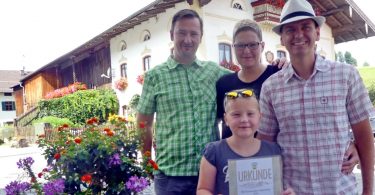 Ganze 50 mal hat bislang Reiner Förster aus Heidelberg seine sommerlichen und winterlichen Urlaubstage auf dem Labergerhof der Familie von Anni und Wolfgang Maurer am Samerberg verbracht. „Wenn es gesundheitlich sein darf, dann will ich noch etliche Aufenthalte dranhängen“ – so Reiner Förster, der 1969 zum ersten Mal auf persönliche Empfehlung kam. Bei einer kleinen Feierstunde mit Sektempfang in der guten Stube des Bauernhofs konnte Reiner Förster und mit seiner vor genau zehn Jahren auf dem Samerberg geehelichten Frau Jutta viele Urlaubs-Anekdoten erzählen. Besonders beeindruckt zeigte er sich bei einer Ehrung durch die Gemeinde und den Tourismusverein über den in den fünf Jahrzehnten gewonnenen Familienanschluss bei den Vermietern. Die Gastgeber ihrerseits dankten dem Ehepaar Förster für die außergewöhnliche Treue zum Vermieterhaus und für das stets freundschaftliche Miteinander. Als Dank gab es für Reiner und Jutta Forster eine Urkunde, das Bilder- und Geschichten-Buch „Samerberg“ sowie zwei Kaffeetassen mit Samerberger Wappen.