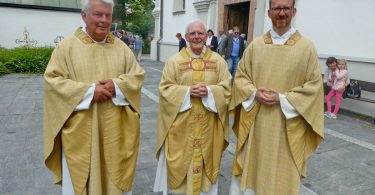 Unterwegs vom Pfarrverband Bad Endorf bis zum Pfarrverband Westliches Chiemsee-Ufer mit dem Priener Pfarrheim als Ziel war Pfarrer Klaus Hofstetter anlässlich seines 50. Geburtstages. Und er war nicht allein unterwegs: nach Kaffee und Kuchen im Pfarrheim Bad Endorf machten sich rund 100 Gläubige auf den Fußweg zur Wallfahrtskirche Mariä Himmelfahrt nach Antwort. Dort gab es eine erste gesangliche Überraschung durch einen Pfarrverbands-Bürgermeister-Chor, an dem sich Marianne Steindlmüller (Frasdorf), Josef Mayer (Rimsting), Wolfgang Kirner (Bad Endorf) sowie Hans-Jürgen Schuster und Alfred Schelhas aus Prien beteiligten. Im weiteren Verlauf der Wanderung erfreuten vor Greimharting die Mitglieder des Bad Endorfer Jugendchors mit einem weiteren „musikalischen Überfall“. In Prien wurden Pfarrer Hofstetter und die Wanderschar von einem fleißigen Team Ehrenamtlicher erwartet. Auf die Gäste warteten Priener Musikanten, der Capella Vocale sowie ein Büffet mit vielen regionalen Köstlichkeiten. Kirchenmusiker Rainer Schütz, der mit dem Lied „Zufriedenheit“ von Joseph Haydn aufwartete, dankte Pfarrer Hofstetter für seine Aufgeschlossenheit gegenüber der Kirchenmusik. Zusammen mit Pfarrer Erich Schmucker und Kurat Hans Schweiger aus Birkenstein, mit denen Pfarrer Hofstetter eine sich regelmäßige treffende Priestergruppe bildet, gab es eine weitere musikalische Einlage auf Saiteninstrumenten. Groß war die Schar der Gratulanten, die persönliche Wünsche überbrachten, zu ihnen gehörten die Schwestern des Indischen Ordens vom Altenheim St. Josef, die geistlichen Mitbrüder, Pfarrer Karl-Friedrich Wackerbarth von der Evangelischen Kirchengemeinde, Bezirksevangelist Andreas Sargant von der Neuapostolischen Kirche (er feierte wenige Tage zuvor ebenfalls 50. Geburtstag), die Vertreter der verschiedenen Kirchengremien aus den Pfarrverbänden Bad Endorf und Westliches Chiemsee-Ufer (sieben Pfarrgemeinderäte und acht Kirchenverwaltungen für insgesamt 31.000 Einwohner), Bürgermeister Philipp Bernhofer von Bernau und auch der Bruder des Jubilars Christoph Hofstetter, der humorvoll einige Anekdoten („himmlische Erlebnisse“) aus dem Leben von und mit seinem Bruder zum Besten gab. In seinen Dankesworten an die Gratulanten erinnerte Klaus Hofstetter, dass er –wie der spätere Papst Joseph Ratzinger- mit sechs Jahren Kardinal werden wollte, aber erst mit 16 Jahren Ministrant wurde, weil ihm bis dahin die Kirchenluft nicht taugte. „Clown oder Pfarrer wollte ich dann werden, da entschied ich mich für den Pfarrer, weil ich da nur sonntags was tun müsste und ansonsten viel Zeit zum Baumkraxeln hätte“, so der gut aufgelegte Pfarrer. Besonders freute er sich an diesem Abend, dass seine Mutter, Gäste aus Brasilien, ein Vertreter der Kirche Chinas sowie die Eltern von Pater Joshy aus Indien zu Gast waren. Zwei Tage später beim Sonntags-Gottesdienst in der Pfarrkirche „Maria Himmelfahrt“ bedankte sich Pfarrer Hofstetter bei den vielen Leuten, die ihm zum 50. Geburtstag mit Gebeten, Glückwünschen und Geschenken gratulierten. Anstatt von persönlichen Geschenken bat der Jubilar um Spenden für Menschen in Syrien, die aufgrund von Krieg und Terror auf der Flucht sind. „Ihr alle habt mir große Freude bereitet“ – so Pfarrer Klaus Hofstetter.