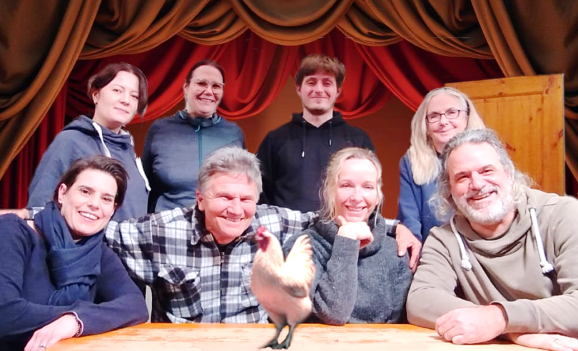 Eine tropfende Dusche war im letzten Jahr Aufhänger des Dreiakters der Bayerischen Volksbühne vhs olm. In diesem Jahr steht ein Huhn im Mittelpunkt des Geschehens. Aber selbstverständlich läuft besagtes Huhn nicht leibhaftig über die Bühne. Und das ist auch gut so, kommt das Huhn im Dreiakter von Christian Jeblick doch recht bald unter die Räder. Spannend und sehr unterhaltsam wird es schon alleine, weil nicht jeder alle Details dieses Unfalls erfährt und mancheiner das eine oder andere falsch versteht. Jedenfalls ist in diesem Fall die Phantasie noch aufregender, als die Realität.