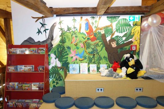 Apropos „gemausert“: eine Leseratte war am Jubiläumstag auch zugegen. Sie war einer von vielen Farbtupfern und Aktivitäten. Kinder im Vorschulalter mit ihren Müttern, Vätern und Großeltern sowie die Mitglieder der eigens gekommenen Senioren-Freizeit-Gruppe wechselten sich im lebhaften Treiben zwischen den Bücherregalen ab. Ruhepole in den verschiedenen Räumen gaben Gelegenheit zum Kinderschminken, Basteln, Lesungen und zu musikalischen Aktivitäten. Vom Willkommensgetränk bis zum Kaffee und Kuchen reichte der kulinarische Eifer des gesamten  PriMA-Teams.