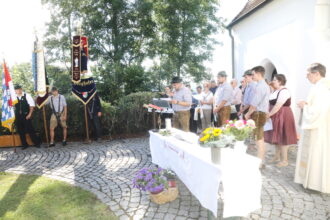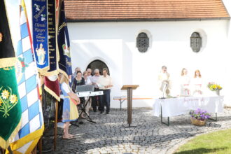 Am Samstagnachmittag, 22. Juni fand anläßlich des 50-jährigen Bestehen des Burschenverein Berghofen eine würdige Festgottesdienstfeier mit den Ortsvereinen zusammen mit dem Patenverein: “Burschenverein Attenhausen”, vor der Filialkirche Sankt Peter und Paul für die lebenden und verstorbenen Vereinsmitglieder statt, die vom Geistlichen Rat Pfarrer Konrad Eder zelebiert wurde. Die musikalische Leitung übernahm ein Chor unter der Leitung von der Andrea Brand, der mit gemeinsamen Volksgesang umrahmt wurde.