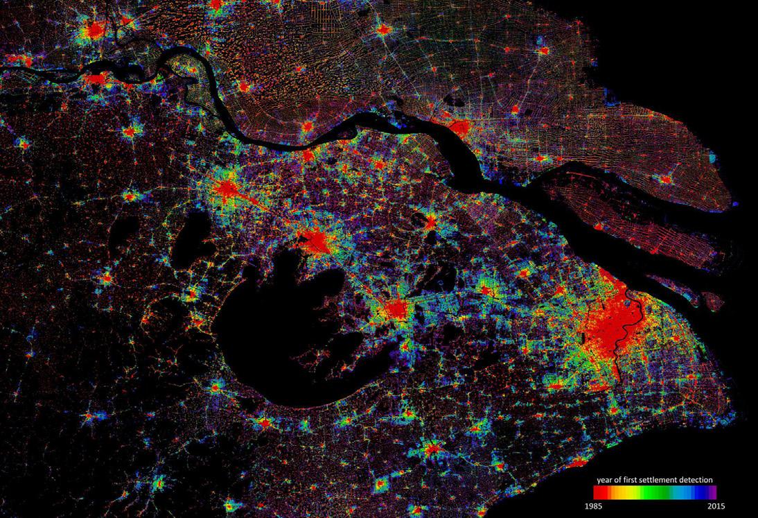 Siedlungswachstum von 1985 bis 2015 in Shanghai
