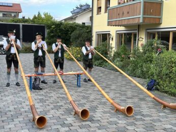 Eine große Zahl von Kolleginnen und Kollegen der großen Köchefamilie, sowie Sponsoren und Freunde der vergangenen 50 Jahre konnte Vorsitzender Max Antholzner im Garten des Landgasthofes Happinger Hof zum Start der Jubiläumsfeier seines rund hundert Mitglieder starken Vereins begrüßen. Für manche gab es ein frohes Wiedersehen, denn die beruflichen Wege haben einige über die Grenzen Rosenheims bayernweit hinausgeführt. Herzlich willkommen dazu die Freunde aus Bad Kissingen, des Landesverbandes Bayern, Südtirol und Österreich. Den Flintsbacher Alphornbläsern wurde kräftig applaudiert, ehe sich die Versammlung im Saal einfand, speziell zu den Grußworten von Landrat Otto Lederer, Theresa Albrecht, Kreisvorsitzenden der Dehoga Bayern und dem Landtagsabgeordneten Sebastian Friesinger. Sie alle betonten die fachliche Qualität und Leistung in Bezug auf die Pflege und Förderung der Kochkunst, der Kollegialität und Geselligkeit, sowie dem unschätzbaren Einsatz bei der Unterstützung der jungen Köchinnen und Köche. Unbestritten prägt die Gastlichkeit in Harmonie mit einheimischer Kochkunst den Ruf unseres Chiemgau-Alpenlandes weit über die Region hinaus.