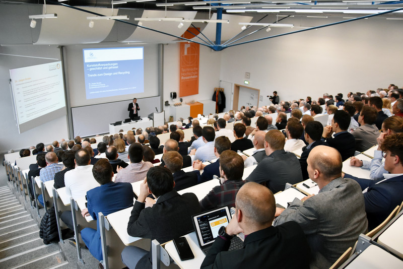 Dr. Karl-Heinz Bourdon, Senior Vice President bei der Kraussmaffei Technologies GmbH, appellierte in seinem Vortrag sowohl an die anwesenden Vertreter der Kunststoffindustrie als auch aus der Wissenschaft und Lehre. Zum einen solle die TH Rosenheim ihre Wege konsequent weiter verfolgen, zum anderen wies er darauf hin, dass die Rückführquoten gerade für Verpackungen erhöht werden müssen. „Die Industrie hat bereits heute gute Technologien, daraus wieder gute Produkte zu machen“, erklärte Dr. Bordon.