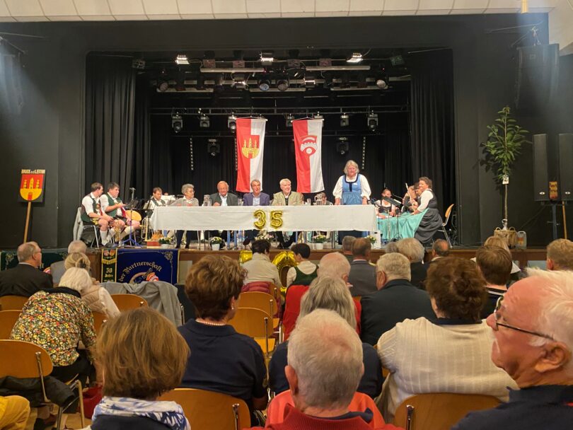 – In einer Festsitzung erinnerten ehemalige und amtierende Bürgermeister sowie Vertreter der Partnerschaftsvereine an Treffen, die Anfänge der Städtepartnerschaft und wie die Freundschaft zwischen den Kommunen en seit 50 Jahren und die der beiden Verbände seit 35 wächst.