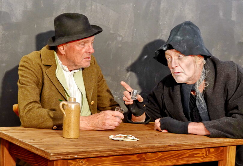 Bericht  Spielszene: Volksbühne Rosenheim –  „Brandner Kaspar“ 2023 von links: Hannes Ginthör, Peter Kirmair –  Foto: Florian Schrei