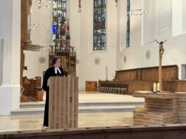 IMG_8484: Dekanin Dorothee Löser hält den evangelischen Gottesdienst in St. Mang. (Foto Dagmar Jessat)