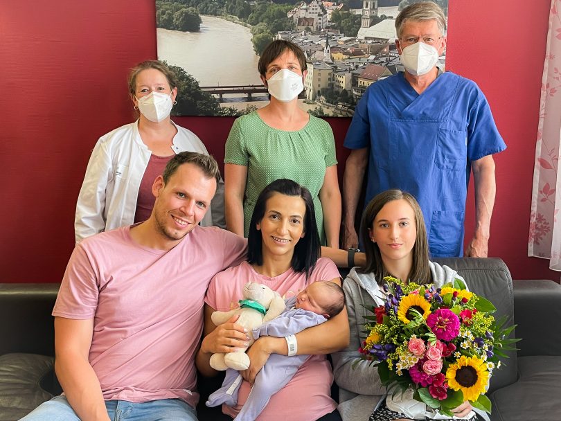 Das Team der Klinik für Gynäkologie und Geburtshilfe der RoMed Klinik Wasserburg am Inn gratulierte zum neuen Familienmitglied mit einem Strauß Blumen und dem RoMed-Teddybären. In den vergangenen Jahren stiegen die Geburtenzahlen der RoMed Klinik Wasserburg am Inn kontinuierlich. Dieser Trend setzt sich auch 2022 fort.