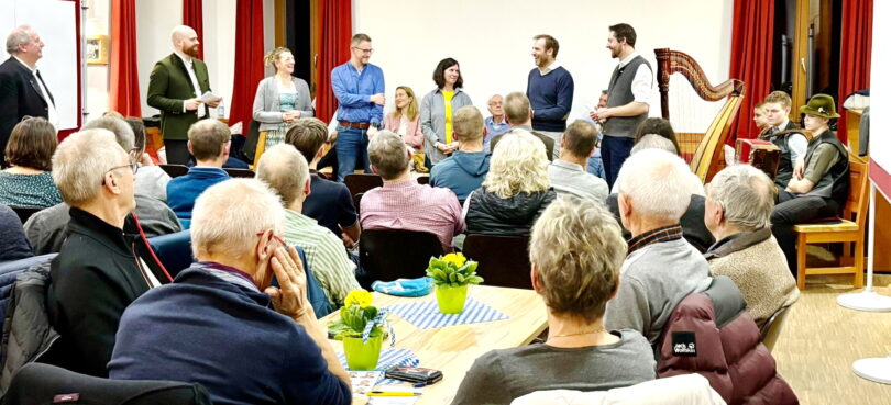 Unterwössen. Kürzlich fand die erste Kandidatenvorstellung der CSU Wössen im Alten Schulhaus in Oberwössen statt. Im voll besetzten Dorfsaal herrschte lockere Atmosphäre. Moderiert wurde die Veranstaltung von Landtagsabgeordnetem Konrad Baur. Der Vorstellung des überparteilich unterstützten Bürgermeisterkandidaten Johannes Weber, des Teams der Gemeinderatskandidaten und von deren Zielen, folgte eine Dorf- und Ideenwerkstatt. Toll musikalisch umrahmt wurde die Veranstaltung von der Hascht-Dawei-Musi mit den Geschwistern Hacher.