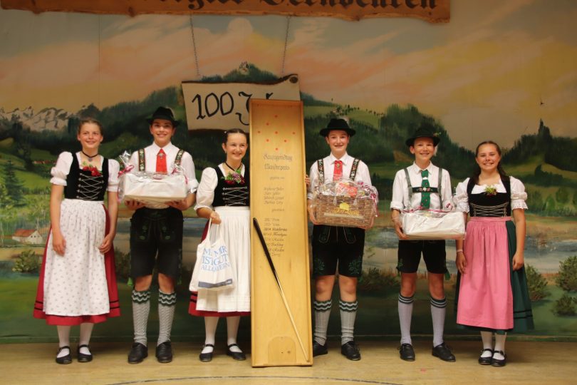 Der Einladung zum 55. Gaujugendtag des Oberen Lechgau-Verbandes verbunden mit dem 100. Gründungsfest der D’ Auerbergler Bernbeuren in der Auerberghalle in Bernbeuren folgten 290 fröhliche Mädla und Buaba, die von 1. Vorstand Georg Hiltensberger begrüßt wurden.