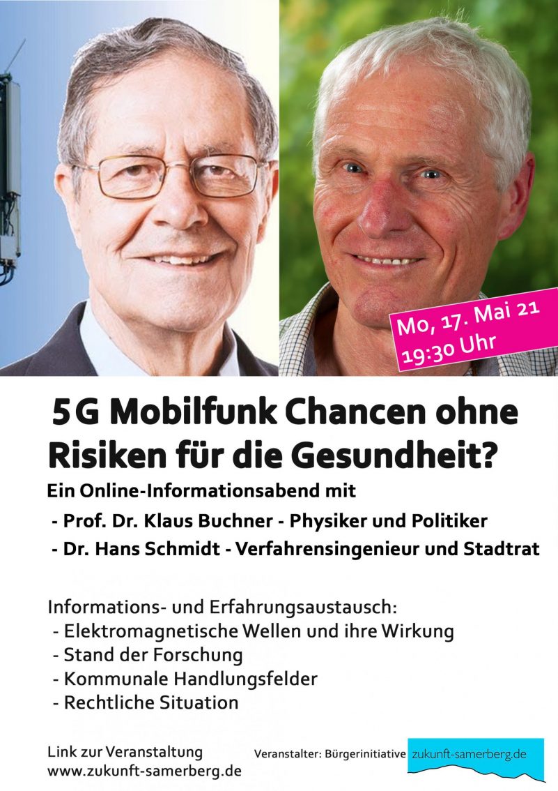 Dabei wird zusätzlich Herr Dr. Hans Schmidt ansprechbar sein. Er ist Referent für Umwelt und Klima des Stadtrats von Wolfratshausen, seit mehr als 20 Jahren Sprecher der Bürgerinitiative Wolfratshausen zum Schutz vor Elektrosmog e.V. und Sprecher des Grünen-Ortsverbands Wolfratshausen.