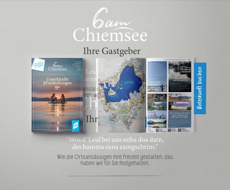 Fotos: Das sehr einladende Gastgeberverzeichnis „Unterkünfte & Entdeckungen 2021“ der Werbegemeinschaft „6 am Chiemsee“ dürfte viele Urlaubsfreuden wecken und den Einheimischen verdeutlichen, dass sie eigentlich gar nicht in Urlaub zu fahren brauchen. Für die erwartungsfrohen Gäste und Gastgeber bleibt nur zu hoffen, dass die Corona-Krise bald überwunden ist und touristische Reisen innerhalb Deutschlands bald wieder möglich sind.