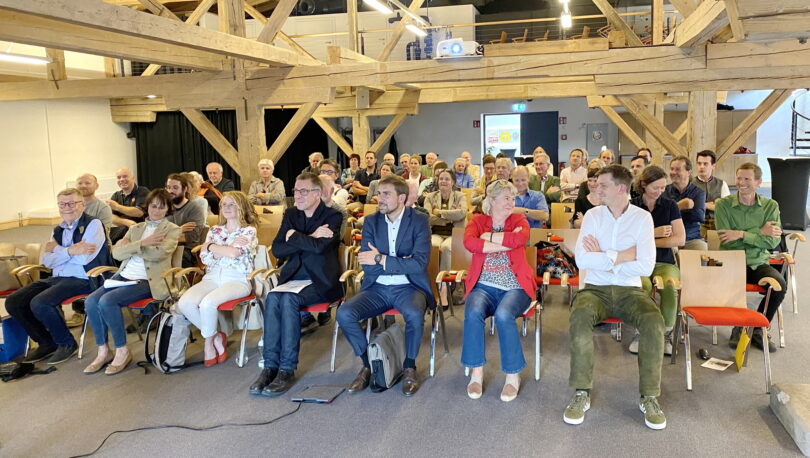 Ihm folgten Susanne Erhart und Andreas Auer vom Verein frauenanderskompetent mit ihrem Vortrag. „Informationen über Nachhaltigkeit müssen heruntergebrochen werden, um sie kommunizieren zu können. Und sie müssen mit Freude verbunden werden“, so Erhart. Die in den sozialökonomischen Betrieben ausgebildeten und weitervermittelten Frauen wären in ihren neuen Firmen dann Botschafterinnen, wie Nachhaltigkeit, Genügsamkeit und Wirtschaftlichkeit miteinander in Einklang gebracht werden können. So wird eine Positivspirale in Gang gebracht. Sarah Friembichler vom Werkschulheim Felbertal berichtete, wie in der von Pfadfindern 1951 gegründeten Schule Bildung für die Zukunft mit Herz, Hand und Hirn gestaltet wird. Dem Felbertal entsprechend verläuft diese Bildung praktisch, mit Baumkartierungen, Müllsammelaktionen und einer schuleigenen Imkerei. Eigene Infrastruktur – unter anderem Photovoltaikanlagen, ein Biomasseheizkraftwerk und eine eigene Trinkwasserquelle – spielt ebenso eine Rolle.