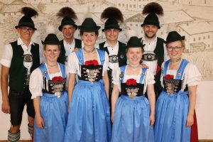 Zum 21. Mal in Folge gewannen die Aktiven des Trachtenvereins „Die lustigen Wildenwarter“ das Gruppenplattln der Aktiven. Der Vorsitzende Peter Voggenauer (links) und seinen beiden Stellvertreter Florian Stoib (rechts) und Helmut Freund (zweiter von rechts) freuen sich mit ihrer siegreichen Gruppe