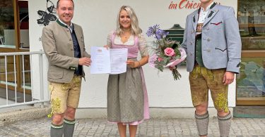Bericht und Bilder: Adelheid Bonnetsmüller, Pressewartin Bayerischer Inngau – Startfoto: Georg Schinnagl mit Landesvorsitzendem Max Bertl (li.) und Gauvorstand Miche Huber vom Patengau Chiemgau-Alpenverband